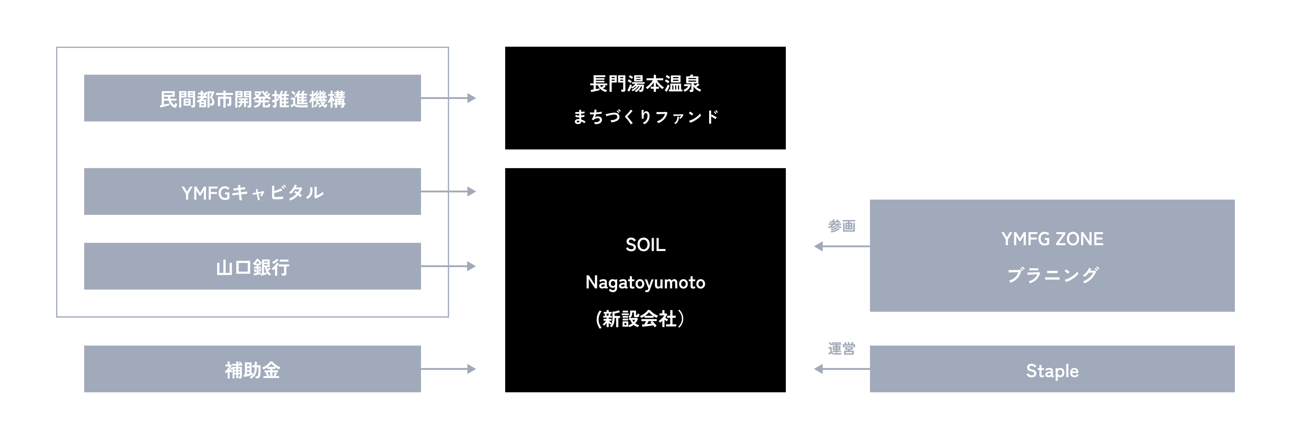 本件は、グループ3社(山口銀行、YM-ZOP、YMFGキャピタル)が連携することで実現したプロジェクトで、これまで培ってきた知見やリソースなどを最大限に活用し、グループ一体となって温泉旅館の再生を起点とするまちづくりプロジェクトに取り組んできました。