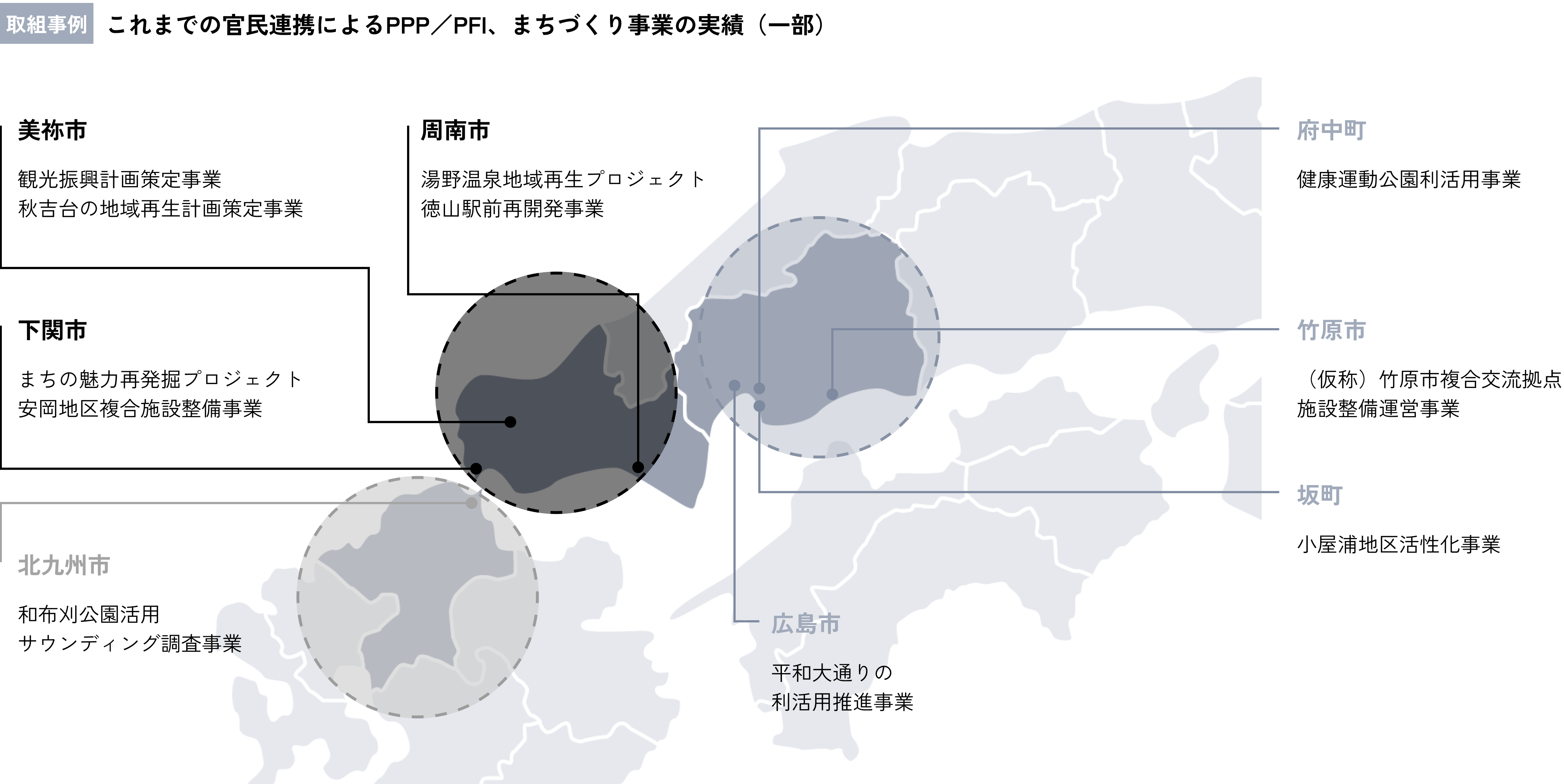 YM-ZOPは、国土交通省よりPPPパートナーとして認定されており、2018年から運営する山口・広島・北九州の3地域におけるPPP/PFI地域連携プラットフォームの運営を通じて、官民連携による公共施設の整備・運営事業などを推進し、地域課題の解決に貢献しています。