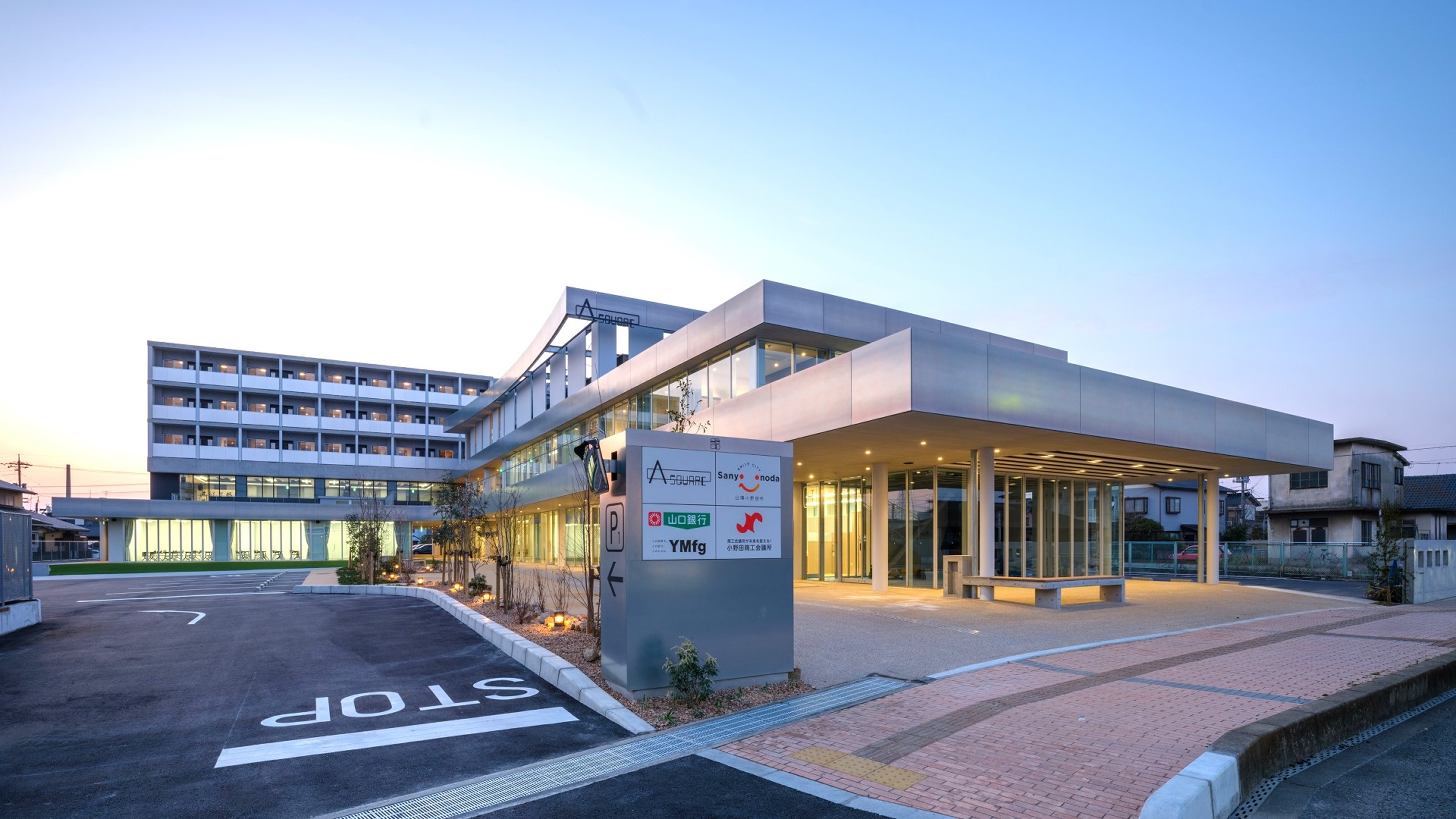 2018年より山口県山陽小野田市において、施設の老朽化、まちの賑わい創出等の地域課題に対応するため、YMFGから山陽小野田市への提案により、YM-ZOPを始めとする当社グループが中心となって複数の市有地を連鎖的に開発するまちづくりプロジェクトを進行させました。2024年4月には、核となる複合施設「A-SQUARE」がオープン。これにより周辺に飲食店が誘致され、基準地価が県内でも数少ない上昇地点となるなど、その経済的インパクトは87億円と算出されました。